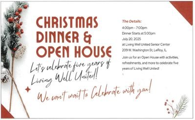 If you would like to partake in the meal, please RSVP by calling 309-830-3433, email livingwellseniorcenter@gmail.com OR sign up at the center!