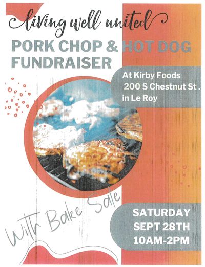 Living Well United invites you to enjoy their pork chop and hot dog fundraiser with bake sale!
